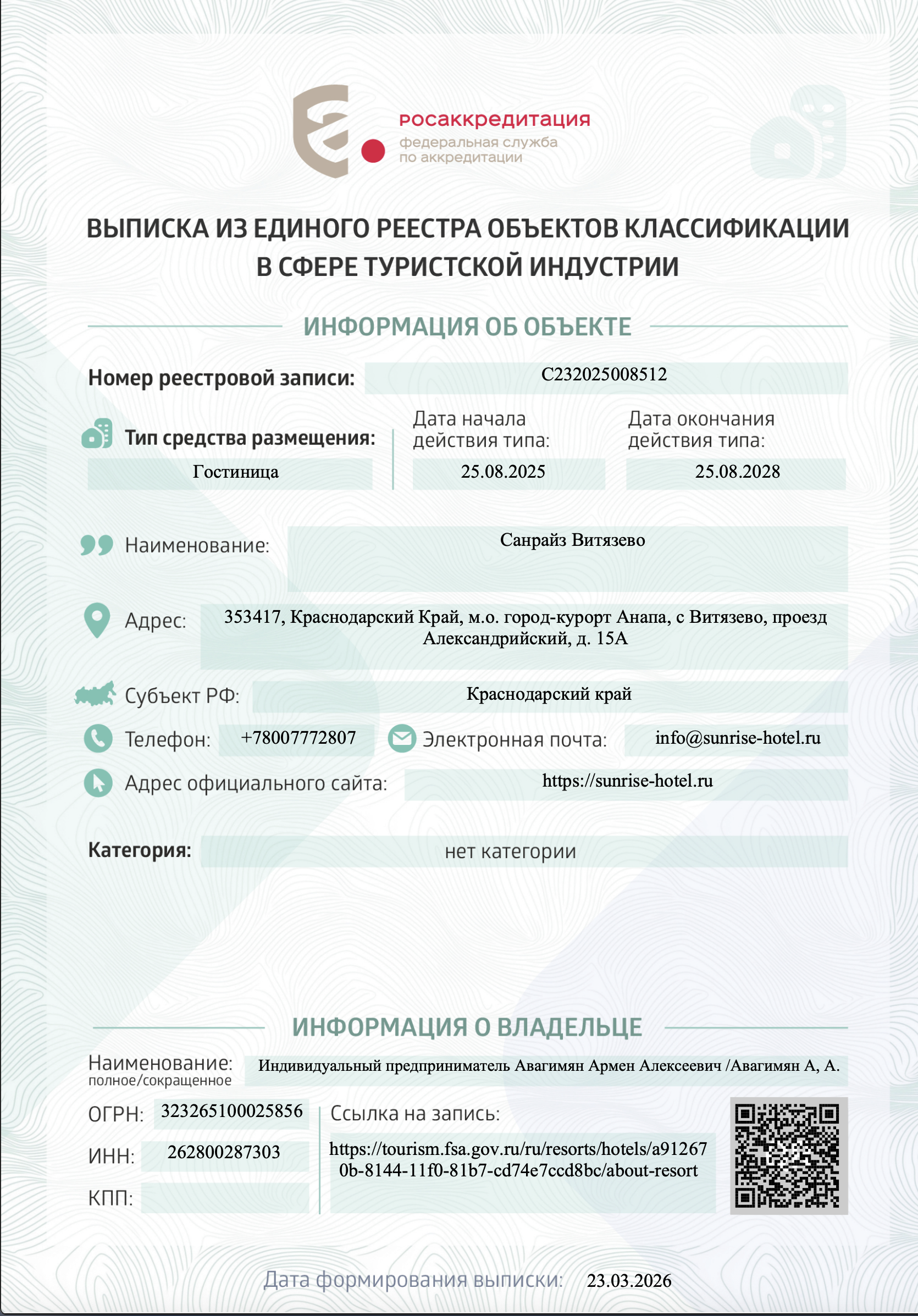 Реестровая запись № С232025008512